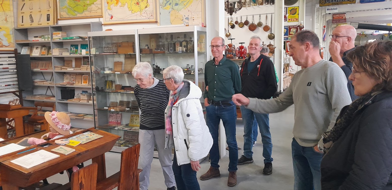 Jos geeft uitleg ! Je mag er alleen maar naar kijken, maar .......... niet! De oude tractoren ( begin van het museum ) Dit was de droom van de jeugd !! Daar moest mee gewerkt worden ! Als je nog een petje zoekt ? Welk meisje wou er nou niet zo'n pop ? Terug naar school ?? Het gereedschap om o.a. teksten en merken in te slaan. Wie kan er nog mee werken ? De speelgoedwagen (?) van de verkeerspolitie ! Ouwe wapens ! Vroegere geloofsattributen. Bij de dorpswinkel. Weer opnieuw schoolmeisje ?? aap, noot, mies.... wie weet 't niet meer ? De stationaire afdeling. (tuf, tuf, tuf,tuf ) Nog efkes een worstje maken ! Senioren Landhorst / 14-10-2025 / Museum Langenboom / GEWELDIG !!!!!!😀